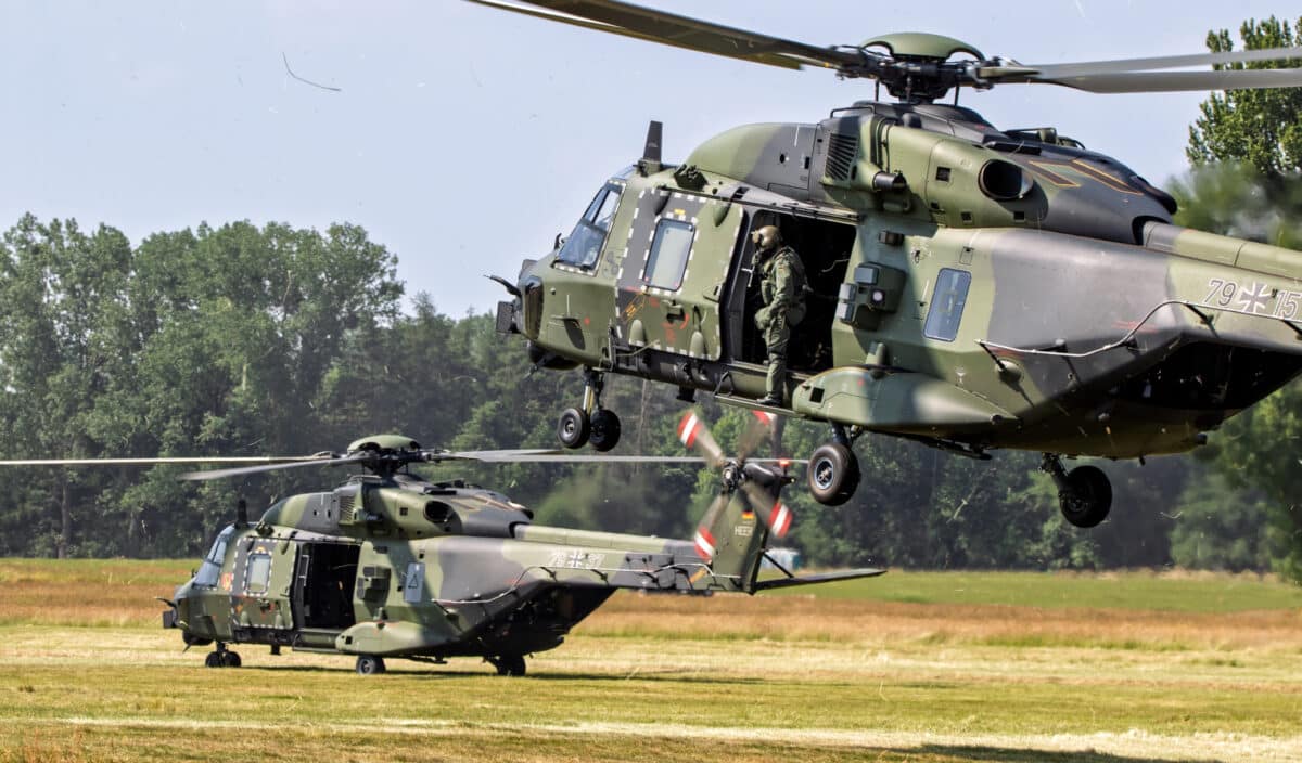 Le NH90 Caïman Standard 2 est un hélicoptère biturbine affichant un poids de 11 tonnes, une longueur de 20 mètres et un rotor qui s’étend sur 16 mètres de diamètre. Il peut prendre en charge jusqu’à 20 soldats ou être configuré pour des évacuations médicales avec 10 civières. Sa capacité à embarquer jusqu’à 4 200 kilogrammes en charge externe le rend hyper polyvalent sur le terrain.