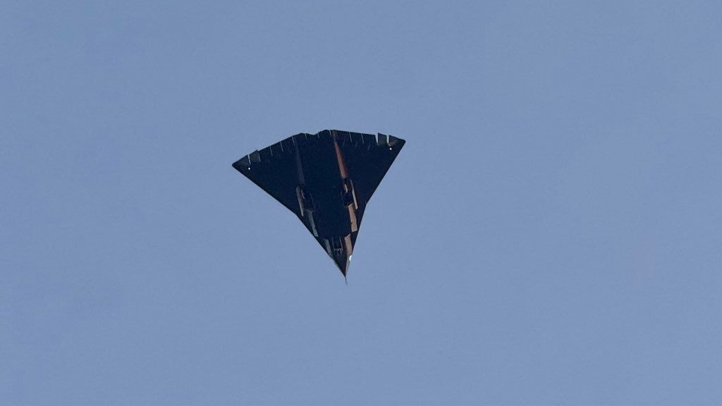 Sur cette image, on voit un appareil d’une envergure impressionnante, avoisinant les 23 mètres de long. On se rend vite compte que sa taille dépasse celle des chasseurs furtifs habituels, y compris le J-20. Son design, avec sa silhouette triangulaire et son motif en diamant, ressemble plus à un bombardier tactique qu’à un simple chasseur. L’absence d’empennage à l’arrière renforce ce ressenti.